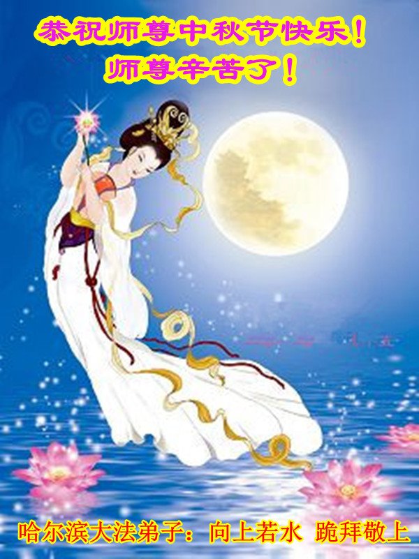 在中秋佳节到来之日,弟子们倍加想念师尊,无限感恩伟大师尊的慈悲苦度!在正法结束的最后值千金、值万金的关键时刻,我们要更加珍惜师尊用巨大的付出延续来的宝贵时间,更加精進的修好自己,救度更多众生,与同修整体配合、整体提高、整体升华,做好三件事,早日圆满随师还!谢谢师尊!师尊辛苦了! 黑龙江省哈尔滨大法弟子恭祝慈悲伟大的师尊中秋节快乐!师尊辛苦了!
