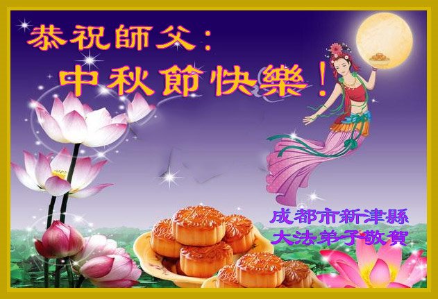 四川省成都市新津县一大法弟子恭祝慈悲伟大的师父中秋节快乐!