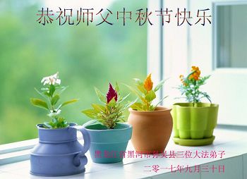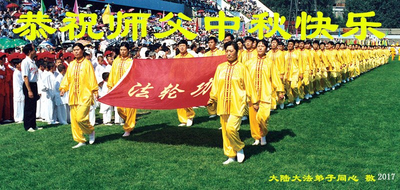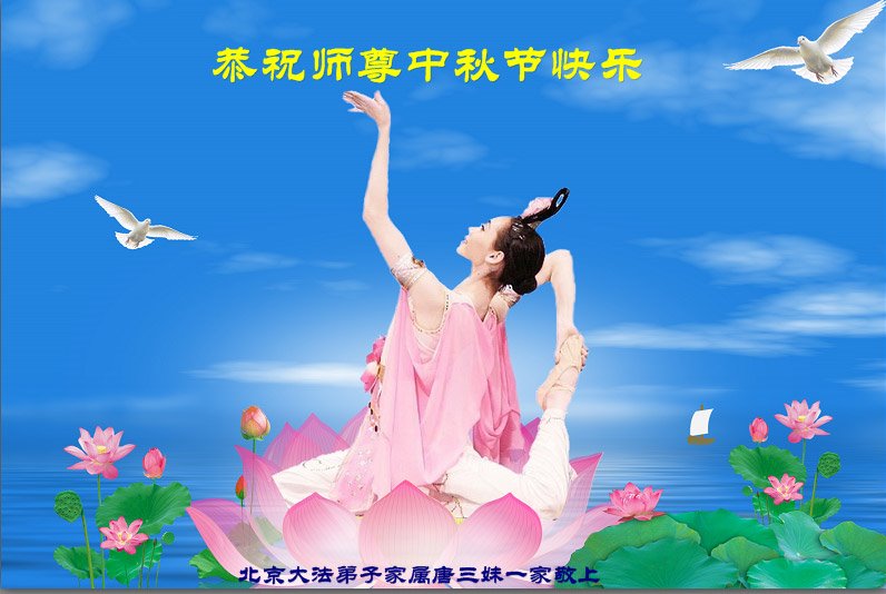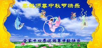 我们是刚从监狱回来不久的大法弟子。感谢师父的慈悲救度。我们一定会奋起直追,多学法,做好三件事,跟上正法的脚步。让师父放心。 大陆大法弟子恭祝师父中秋快乐!