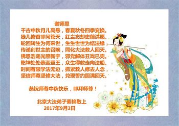 北京大法弟子恭祝慈悲伟大的师尊中秋节快乐!