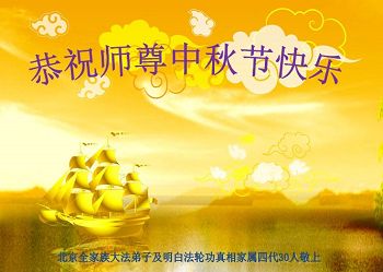 北京全家族大法弟子及明白法轮功真相家属四代30人恭祝慈悲伟大的师尊中秋快乐!