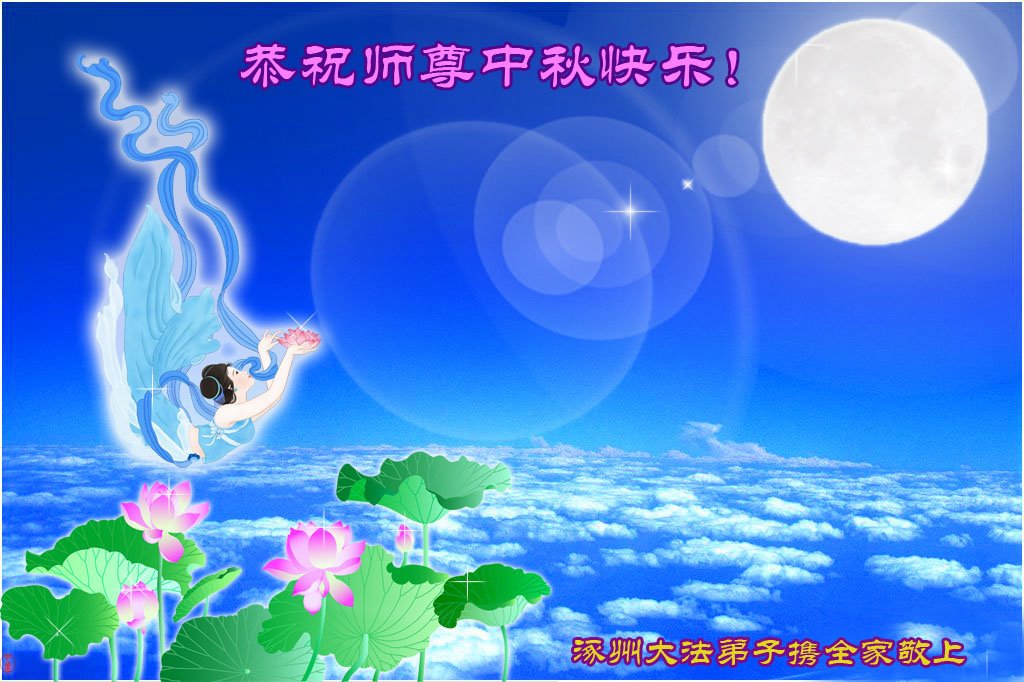 弟子衷心的祝愿慈悲伟大的师尊中秋快乐!弟子知道时间不多了,弟子会努力多救人。 弟子向师尊合十、跪拜:谢谢师父的慈悲救度! 河北省保定市涞水县大法弟子恭祝师尊中秋快乐!