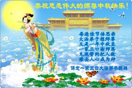 师尊您辛苦了!让中秋明月带去我们大陆大法弟子对师尊的思念与感恩!跪拜师尊,合十。 河北省保定市涞水县一大法弟子全家恭祝师尊中秋快乐!