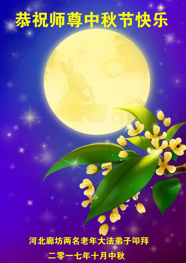 【明慧网二零一七年十月三日】 河北廊坊两名老年大法弟子恭祝师尊中秋节快乐!