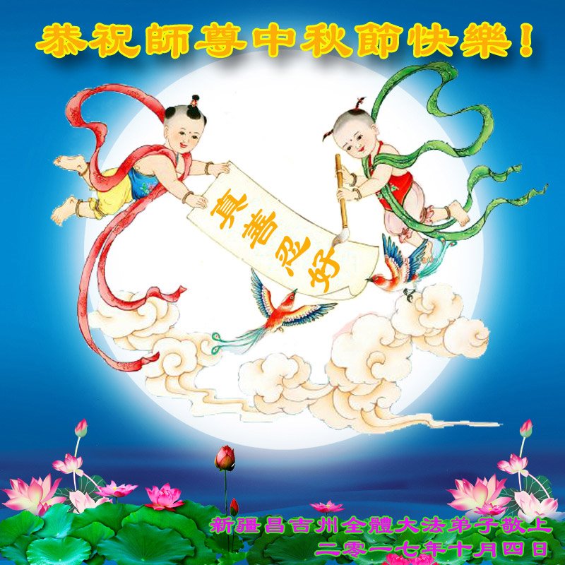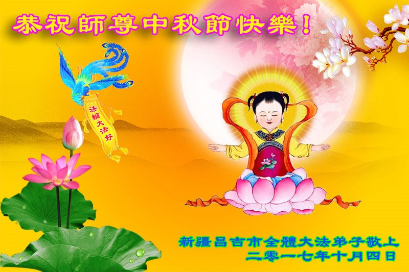 我代表我全家对师父感恩,用尽人间语言也难以诉说对师父的感恩。弟子唯有纯纯净净做好三件事,坚定走在师父安排的路上,跟师父回家。 新疆乌鲁木齐市一大法弟子恭祝师父中秋节快乐!