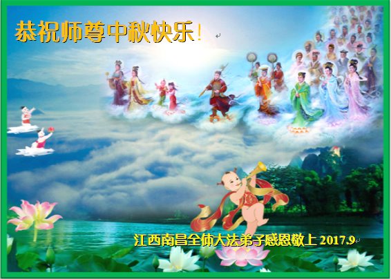 【明慧网二零一七年十月三日】 江西省南昌大法弟子及全家人恭祝慈悲伟大的师尊中秋佳节快乐!