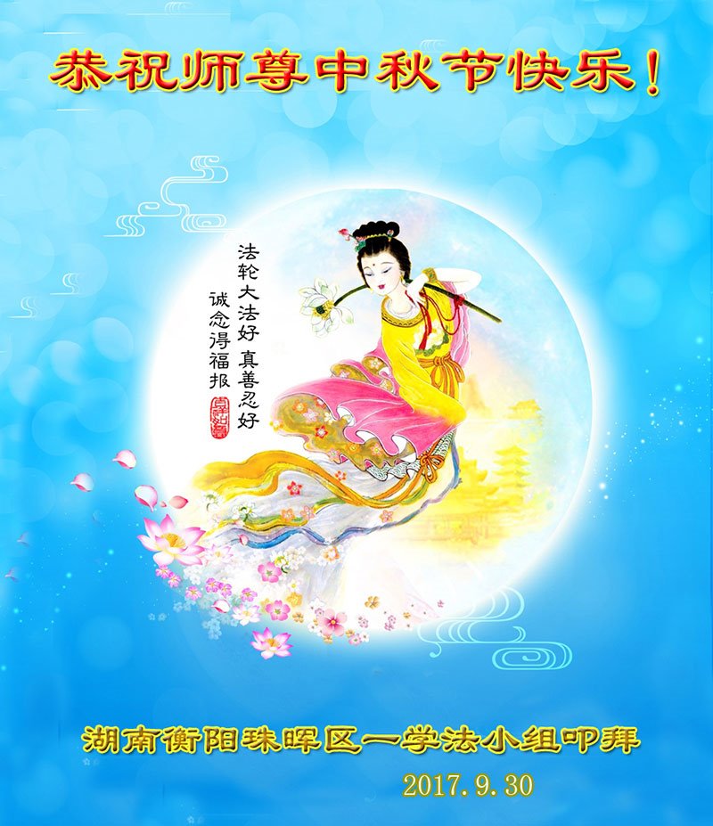 【明慧网二零一七年十月三日】 湖南衡阳珠晖区一学法小组恭祝师尊中秋节快乐!