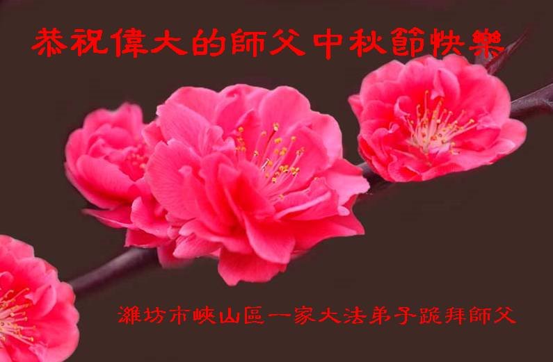 师尊您好!您辛苦了!感谢师尊的佛恩浩荡,走好走正师尊安排的路,在师尊延续来的有限时间内,做好三件事,遇事向内找,把这朵小花开好,弟子盼望师尊早日回国团聚。 山东省潍坊市诸城市大法弟子恭祝师尊中秋快乐!