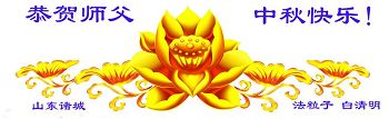 山东省潍坊诸城市母子大法弟子恭祝慈悲伟大的师尊中秋节快乐! 山东省潍坊市高密市大法弟子全家恭祝师尊中秋快乐!
