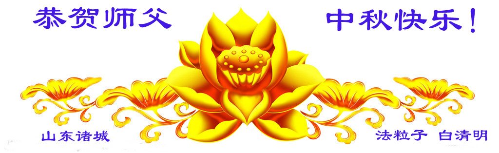 师父!您好!师父!您辛苦了!中秋节快到了,山东省昌邑市全体大法弟子恭祝慈悲伟大的师尊中秋节快乐! 回首往事,在这十八年,中共对一群信仰“真善忍”的修炼团体,血雨腥风的残酷迫害中,我们依然在法轮大法中修炼,都离不开师尊的慈悲苦度!弟子唯有精進再精進,多去人心,做好三件事,以报师恩! 潍坊昌邑市全体大法弟子敬上 山东省潍坊市诸城市一学法小组的全体大法弟子恭祝慈悲伟大的师父中秋节快乐!