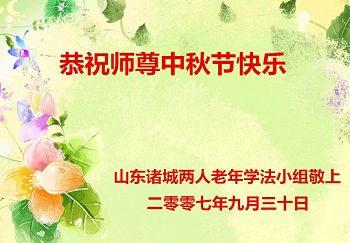 中秋节来临之际,祝师父中秋节日快乐!同时,遵循师父教诲,在正法的最后时刻,做好三件事,兑现史前誓约,跟师父回家。 山东省潍坊市诸城市两人老年学法小组恭祝师尊中秋节快乐!
