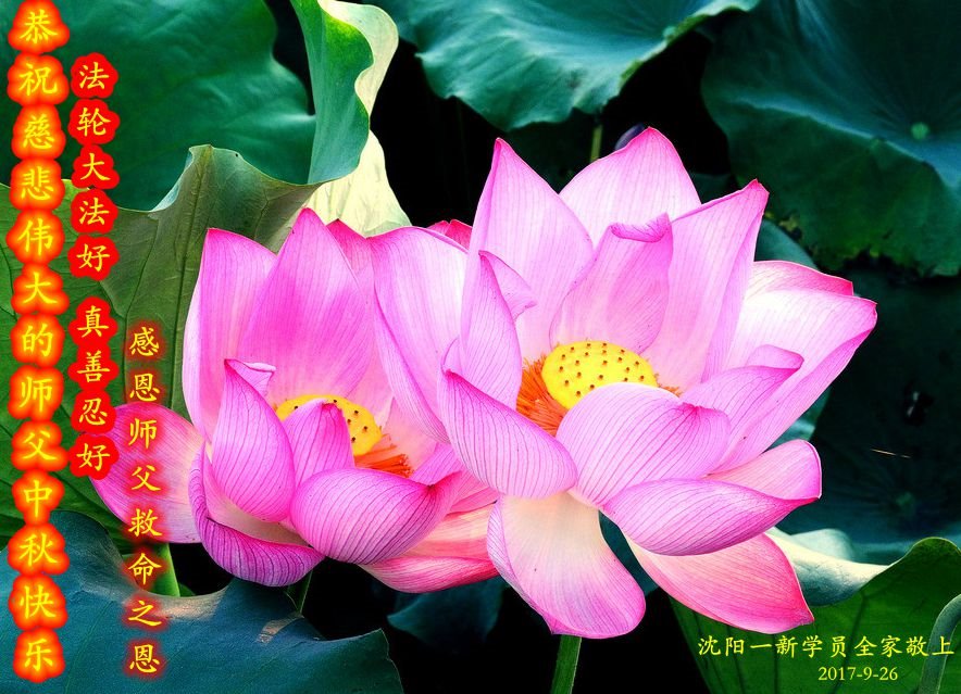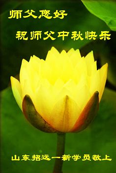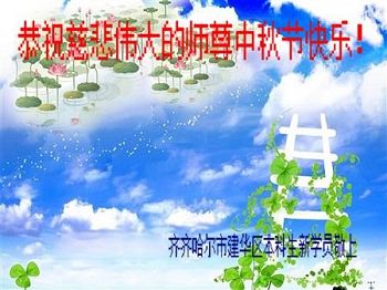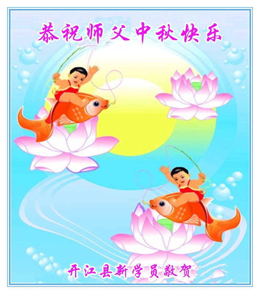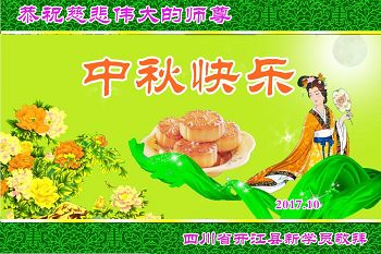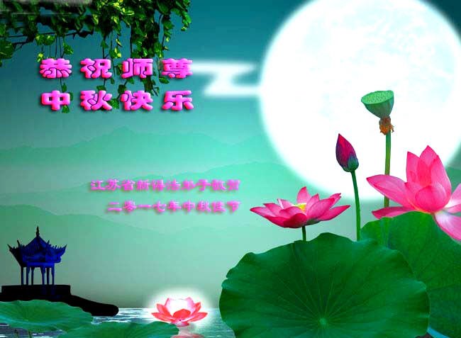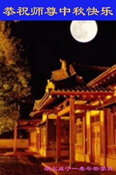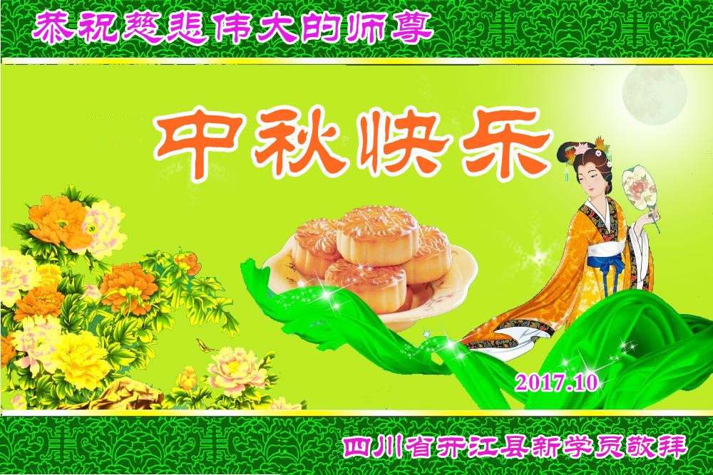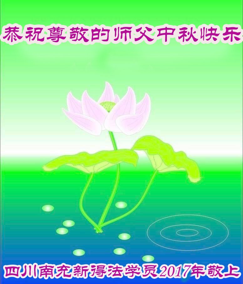 | 【明慧网二零一七年十月三日】尽管法轮大法遭受中共残酷迫害已长达十八年,由于大法法理的博大精深及祛病健身的神奇功效,随着正法進程的突飞猛進,明真相的中国民众正在源源不断的走進大法修炼中来。 来自吉林、湖北、辽宁、北京、山东、江苏、浙江、四川、湖南、黑龙江等地新学员感恩师父给了他们健康的身体,让他们找到了生命的归宿。新学员们表示,一定多学法,不断的精進,跟上正法進程。 吉林省通化市柳河县一新学员及全家恭祝慈悲伟大的师尊中秋节快乐!弟子唯有多学法,不断的精進,跟上正法進程,回报师恩! 全家叩拜师尊! 合十! 吉林长春榆树市新得法的大法弟子恭祝慈悲伟大师尊中秋快乐!湖北一大法新学员恭祝师父中秋快乐!我是一位刚得法的新学员,职业是某市一机关副局长。我妻子是大学老师。十六年前得了肝癌晚期,医院说没治了,叫我妻子回家。我妻子无奈就求师父救她,她很快就好了。我妻子叫我修炼法轮功,我说等退休再炼。可是,还没到退休,去年的一天我突发脑溢血,我妻子又一次求师父救我。我现在已开始修炼法轮功。我感谢师父救了我们俩人的命!我一定要好好的修炼。 辽宁沈阳一新学员全家恭祝师尊中秋快乐!我是二零一四年得法的新学员。那时由于重病诚心念“法轮大法好!真善忍好!”在三天内所有的病症就全消失了,让我感受到大法无边的法力与师父的洪大慈悲,从而而走入大法修炼。我感谢师尊的救命之恩!感谢师尊给了我第二次生命,教我做好人。现在的我每天都无比快乐!、幸福,跪拜师尊! 我们全家在此恭祝慈悲伟大的师尊中秋节快乐! 北京昌平学法一年的新学员恭祝慈悲伟大的师父中秋节快乐!恭祝慈悲伟大的师父中秋节快乐! 北京昌平学法一年的新学员恭祝 2017年中秋节 山东烟台招远市区一新学员恭祝慈悲伟大的师尊中秋节快乐!我是今年刚得法的新学员,我能得大法太幸运了。师父不仅给我净化了身体,在师父的点悟下,我的心性也在不断的提高,我们全家受益匪浅。我一定不辜负师父的苦心救度,做一个为别人着想的好人。 感恩师尊的良苦用心! 江苏省新得法大法弟子恭祝师尊中秋快乐!湖北咸宁一老年大法新学员恭祝师尊中秋快乐!我今年八十五岁,得了晚期舌头恶性肿瘤症。二零一五年我开始修炼法轮功,现在很好。 感谢师父的救命之恩! 浙江省一大法新学员跪拜恭祝慈悲伟大的师父中秋快乐!感谢师父的慈悲救度! 四川南充新得法的学员恭贺慈悲伟大的师尊中秋快乐!江苏省连云港市大法新学员恭祝慈悲伟大的师尊中秋节快乐!谢师恩 大法洪传五大洲 学员得法解心忧 奉劝世人快醒悟 早上法船乐悠悠 辽宁沈阳一老学员一新学员恭祝师尊中秋快乐!感谢师尊慈悲救度!弟子唯有精進实修,做好三件事,努力多救人,以报师恩。 湖南省长沙市一大法新学员全家祝师尊中秋节快乐!四川成都一学法小组全体大法弟子及新学员恭祝慈悲伟大的师尊丁酉年中秋佳节快乐!师尊您辛苦了,弟子叩谢师尊的救度之恩,弟子千言万语汇成一句话:“法轮大法好,真善忍好”! 成都一学法小组全体大法弟子及新学员叩拜师尊 合十! 二零一七年中秋佳节敬上 黑龙江省方正林业局一名刚得法的新学员恭祝师父中秋节快乐!师父您好!我是刚开始学《转法轮》的新学员,我向您敬礼:师父,祝您中秋节快乐! 四川省达州市开江县全体新学员恭祝慈悲伟大的师尊中秋快乐!四川开江县新学员恭祝师父中秋快乐!四川省达州市开江县一新学员敬祝慈悲伟大的师父中秋快乐!四川省开江县新学员恭祝慈悲伟大的师尊中秋快乐!辽宁大连三位八十多岁老年新学员恭祝慈悲伟大的师尊中秋节快乐!感恩师尊,弟子们一定好好修,跟师尊回家! 弟子跪拜师尊! 江蘇省南通市新学员恭祝师尊中秋节快乐!叩拜师尊!四川省达州市开江县新宁镇部份新学员恭祝慈悲的恩师中秋快乐!黑龙江齐齐哈尔建华区新学员恭祝慈悲伟大的师尊中秋节快乐!