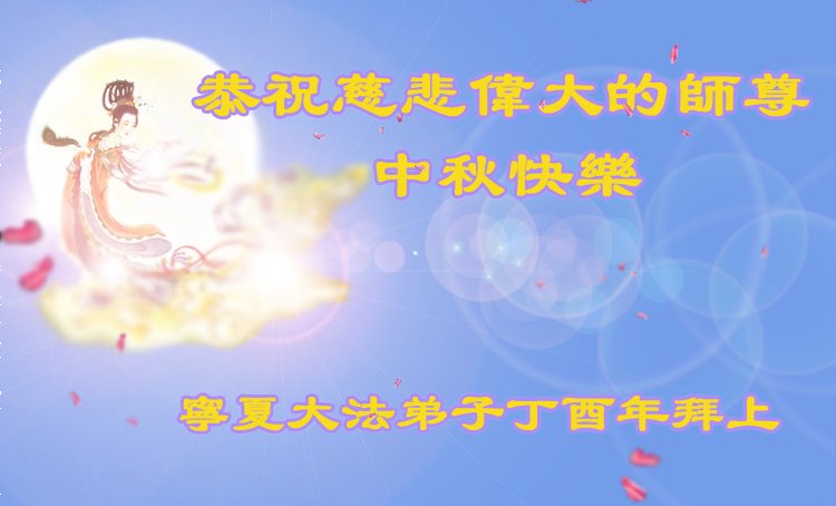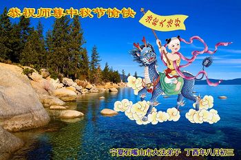 弟子叩拜师尊法像, 中秋盼师团圆更想; 救徒脱离苦海无边, 大法实修就登天堂。 宁夏银川市大法弟子恭祝师尊中秋节快乐!