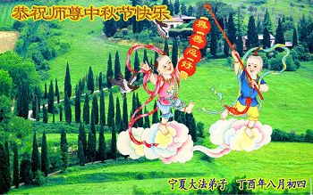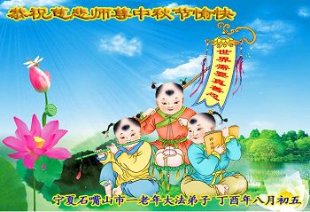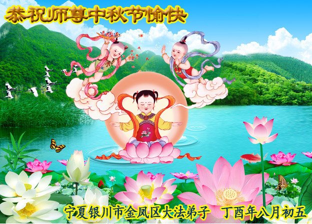 【明慧网二零一七年十月三日】 宁夏银川市兴庆区一家七位大法弟子恭祝师尊中秋节快乐!