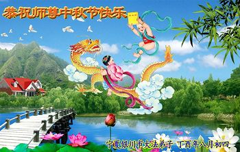 中秋节临近,恭祝师尊节日快乐! 宁夏银川地区一老年大法弟子夫妇恭贺 宁夏一家三个大法弟子恭祝师尊中秋节快乐!