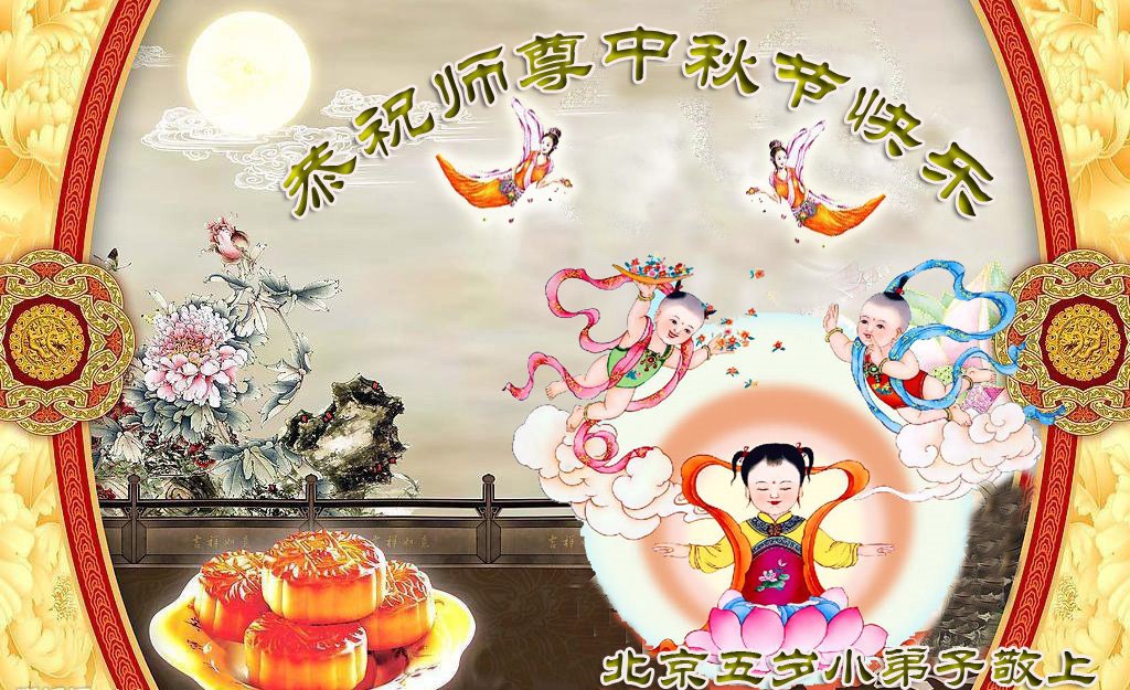 天津大法小弟子值此中秋佳节之际向师父送上诚挚的祝愿!以前的我走了太多弯路,在大法的庇护与指引下才磕磕绊绊的走了过来。我以后定会努力早日跟上正法進程,不辜负师尊的慈悲救度! 北京石景山五岁小弟子祝师父中秋节快乐!