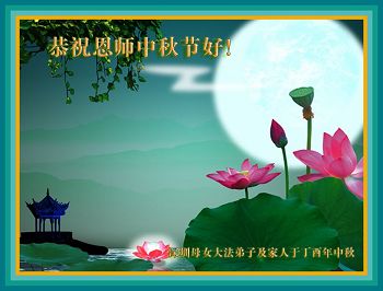 慈悲伟大的师父您好!感恩师尊的救度!弟子们非常想念师尊,盼望师尊早日回到中原。 广东省梅州市大法弟子恭祝慈悲伟大的师尊中秋快乐!