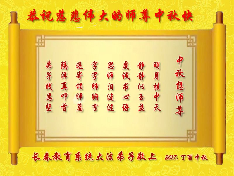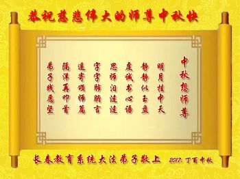 【明慧网二零一七年十月三日】 吉林省长春教育系统大法弟子恭祝师尊中秋快乐!