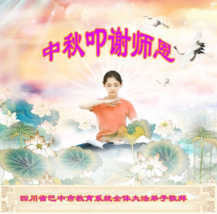 每逢佳节倍思亲,师尊辛苦了!随着正法進程加快,我们只有遵照您的教导,多学法、学好法,修好自己的同时,才能做好、完成好师尊您交给我们的这一切。合十!弟子敬拜! 四川省巴中市教育系统全体大法弟子恭祝师尊中秋节快乐!