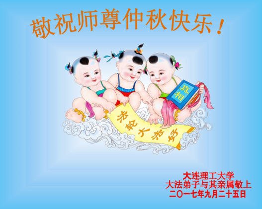 师父,您好!师父您辛苦了!内蒙古教育系统大法弟子,在各自的救人项目里,做着该做的。十八年的迫害中,内蒙古教育系统大法弟子,有的经历了被非法劳教、判刑、开除公职等迫害,但是弟子们坚定的走在大法修炼的路上。师父,是您在时刻看护着我们,我们才得以走过这艰难的岁月,弟子们感恩师父!天快亮了,剩下的路也不多了,我们一定谨记您的教诲,走好这段路。弟子们叩首、合十 辽宁省大连理工大学大法弟子与其亲属敬祝师尊中秋快乐!