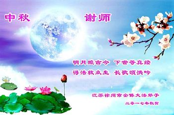 江苏南京一大法弟子敬上弟子跪拜师尊 江苏常州一大法弟子恭祝师父中秋节快乐!