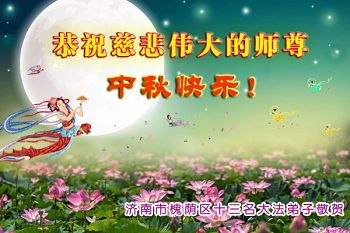 山东省济南市槐荫区十三名大法弟子恭祝慈悲伟大的师尊中秋快乐! 山东省济南一家三人大法弟子祝师父中秋快乐!