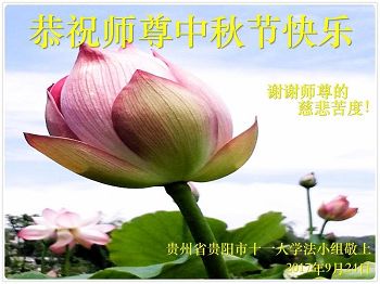 请师父放心,我们一定在做好三件中修正自己,尽力达到师尊对我们的要求。 贵阳市七人学法小组 贵州遵义大法弟子恭祝师尊中秋快乐!