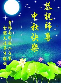 恭祝师尊中秋节快乐!贵阳一大法弟子敬上! 贵州省贵阳二戈寨全体大法弟子恭祝师尊中秋节快乐!