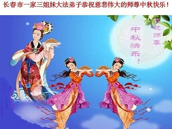 吉林省长春一家三姐妹大法弟子恭祝慈悲伟大的师尊中秋快乐!