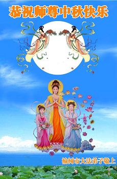 中秋来临之际,恭祝师尊节日快乐!弟子想念师尊,盼师尊早日归乡。弟子在这最后时刻要做好三件事,决不辜负师尊的殷切希望。 吉林省长春市九台市区一学法小组恭祝师尊中秋节快乐!
