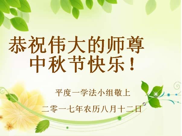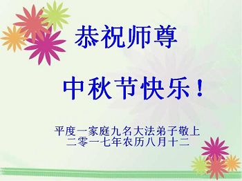 山东青岛平度一家庭9名大法弟子恭祝伟大的师尊中秋节快乐! 山东省青岛市市北区大法弟子恭祝慈悲伟大的师尊中秋节快乐!