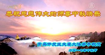 山东省青岛一学法小组大法弟子恭祝伟大师尊中秋节快乐!