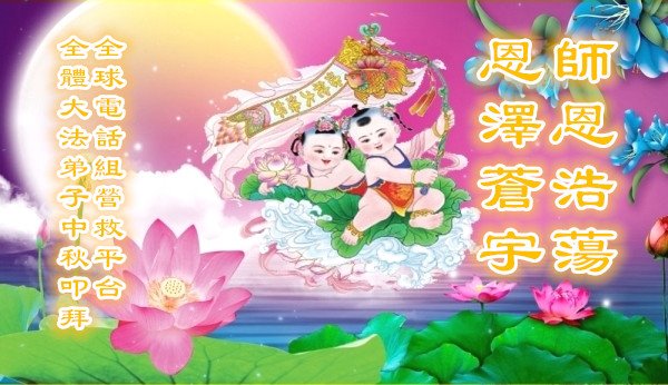 全球电话组营救平台全体大法弟子向慈悲伟大的师父叩拜中秋!恭祝师父中秋节好! 中秋佳节秋月明 主佛浩慈拯苍宇 发愿下走救众生 电话真相捣妖穴 助师正法善解缘 众生得救月更圆 全球电话组营救平台全体大法弟子向慈悲伟大的师父叩拜中秋!