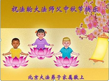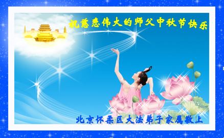 大法师父您好!您辛苦了! 谢谢您教出大法弟子这样一个让世人尊敬又羡慕的特殊群体,在中共长达18年的迫害中,他们不顾自己的生命安危,义无反顾的向世人讲清真相,救度着众生,了不起。您才是众生的希望与依托。 我虽然没有走入大法修炼,可是法轮大法给予我的一切使我受益无穷,我一切都好,真是一人炼功,全家受益。作为大法弟子家属,我永远和你们站在一起,支持您和法轮大法弟子所做的一切。愿您的所有弟子都不辱使命,功成圆满,随您回家。愿您早日回到大陆,众生想念您,希望见到您。 北京大法弟子家属敬上 北京怀柔区大法弟子家属祝慈悲伟大的师父中秋节快乐!