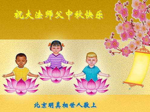 祝法轮大法师父中秋节快乐!大法师父您好!您辛苦了! 我弟妹是修炼法轮功的,经常跟我讲法轮功真相,使我明白了法轮大法是高德大法,是救人的佛法。我永远支持法轮功。 我借这个中秋佳节向法轮功师父问好,祝法轮功师父中秋快乐!我会记住“法轮大法好”、“真善忍好”九字真言。感谢我弟妹对我讲的所有真相,使我有了选择生命的机会,盼大法师父早日回国。 北京明真相的世人敬上 北京明真相的世人恭祝大法师父中秋节快乐!