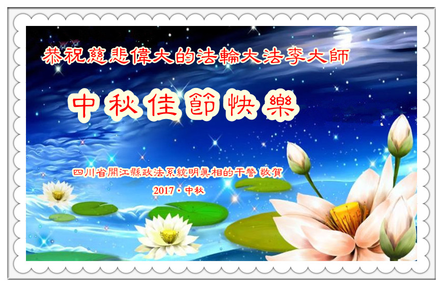 四川省开江县政法系统明真相的警察恭祝慈悲伟大的法轮大法李大师中秋佳节快乐!
