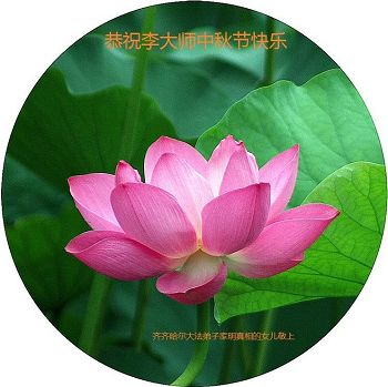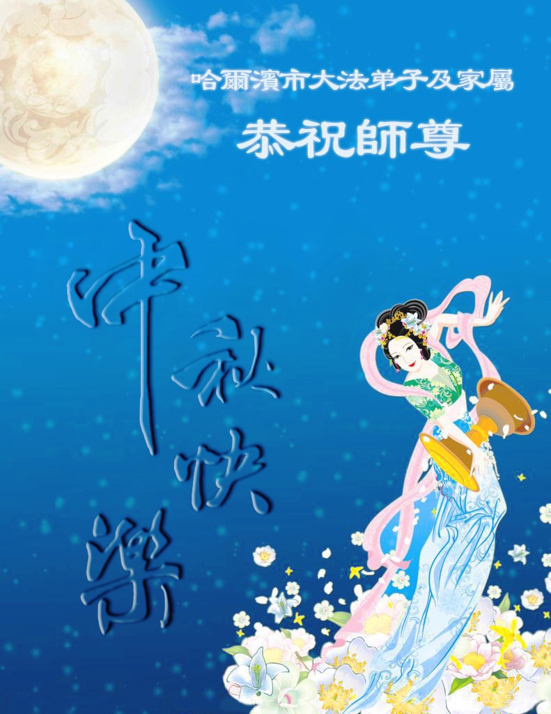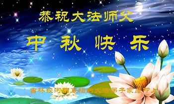 大法师父您好! 我是一名法轮大法弟子家属,同时受益于法轮大法。这都是法轮大法师父给我带来的福报。 在这中秋节到来之际,我向法轮大法师父问好,祝大法师父中秋节快乐! 北京明真相世人敬上 黑龙江哈尔滨市一大法弟子家属恭祝师尊中秋快乐!