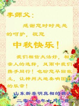 山东新泰明真相世人恭贺大法师父中秋快乐!