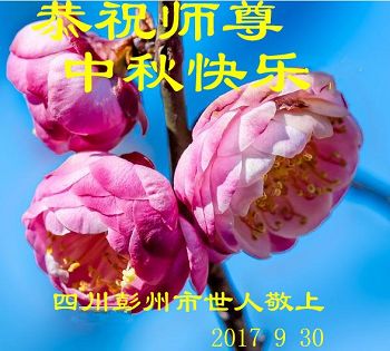 陕西省礼泉县二位明白真相的世人,委托法轮功学员向慈悲伟大的师尊表示节日的问候,敬祝师尊中秋节快乐! 四川开江县一大法弟子的大家族所有明真相的世人恭祝师尊中秋佳节快乐!