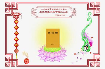 山东聊城大法弟子全家恭祝慈悲伟大的师尊中秋节快乐!