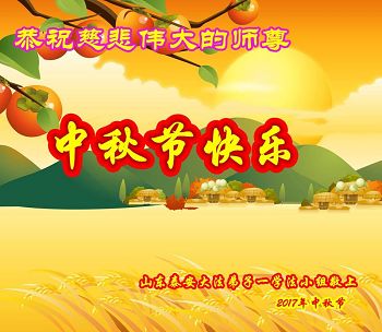 感谢师尊的慈悲救度,我们一定谨记师尊的教诲,学法实修,努力做好三件事,救度更多的众生,谢谢伟大慈悲的师尊! 山东滕州市大法弟子 2017.9.29 山东省济宁市学法小组恭祝师尊中秋节快乐!