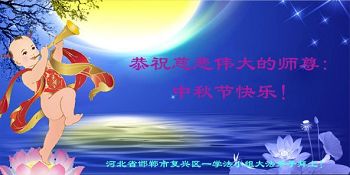 河北省邯郸市复兴区一学法小组大法弟子恭祝慈悲伟大的师尊中秋节快乐! 河北省邯郸市复兴区一学法小组大法弟子恭祝慈悲伟大的师尊中秋节快乐!
