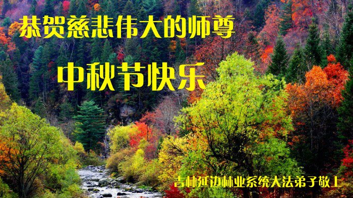 中石化湖南省岳阳市石油公司大法弟子恭祝师父中秋快乐! 大法洪传二五载, 中秋佳节又到来。 恭祝师尊中秋好, 跪谢师尊慈悲怀。 二零一七年中秋 吉林延边林业系统大法弟子恭祝慈悲伟大的师尊中秋节快乐!。