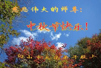 师尊您好!师尊您辛苦了!弟子不知师尊二十五年来,为众弟子付出了怎样艰辛,为众弟子操怎样心,弟子感恩师尊慈悲救度。弟子唯有精進修好自己让师尊多一份欣慰。 吉林省通化县大法弟子恭祝师尊中秋节快乐!
