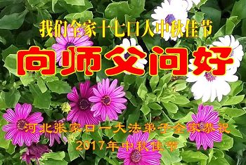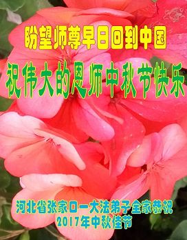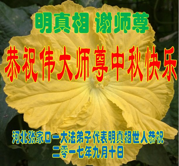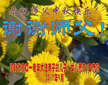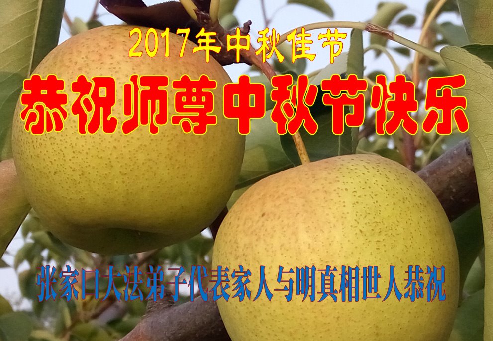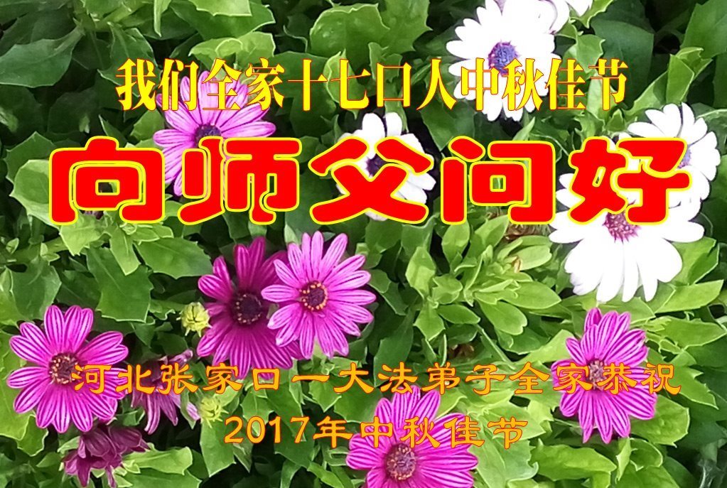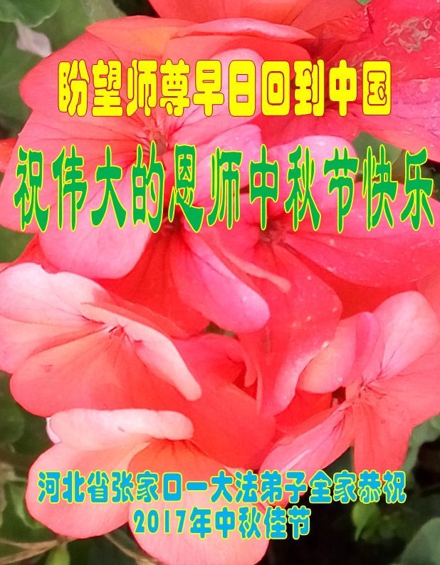 河北张家口一大法弟子代表明真相世人恭祝 二零一七年九月十日 河北张家口市蔚县大法弟子全家恭祝师尊中秋节快乐!