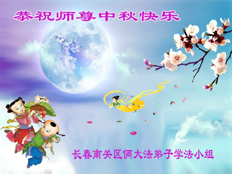 吉林省长春市南关区俩大法弟子学法小组恭祝师尊中秋快乐!师尊辛苦了!