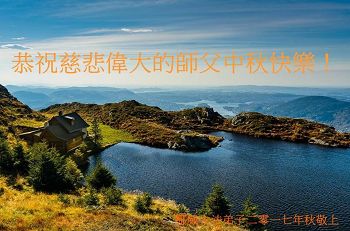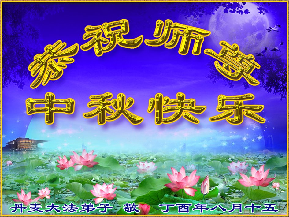 恭祝慈悲伟大的师父中秋节快乐! 丹麦全体大法弟子 敬 丁酉年八月十五 挪威约维克大法弟子恭祝师尊中秋快乐!