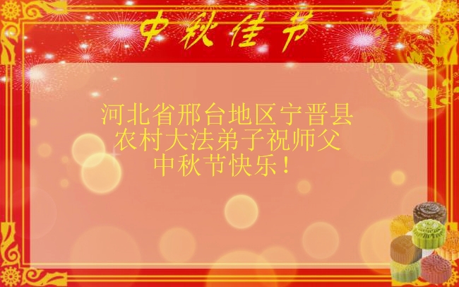 请师父放心,弟子一定克服一切困难,做好三件事,跟师父回家。 河北省邢台市宁晋县农村的夫妻大法弟子恭祝师尊中秋快乐!