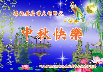 师尊:您好! 值此中秋佳节到来之际,恭祝师尊节日快乐! 感谢您对弟子的慈悲救度,感谢您给众生重获新生的机会。 师尊,您辛苦了! 弟子敬上 二零一七年十月一日 重庆农村大法弟子恭祝伟大的李洪志师父中秋节快乐!