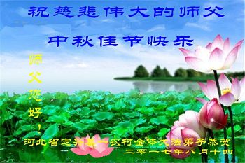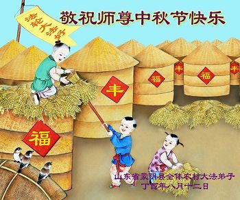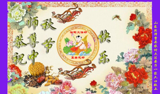 慈悲伟大的师尊好!在正法的最后时刻,在有限的时间里,我们会更加努力,多学法,跟上正法進程,踏实的修好自己,完成好救人的使命,随师尊回家。感恩师父的慈悲苦度!弟子合十叩拜! 山东省临沂市蒙阴县全体农村大法弟子敬祝师尊中秋节快乐!